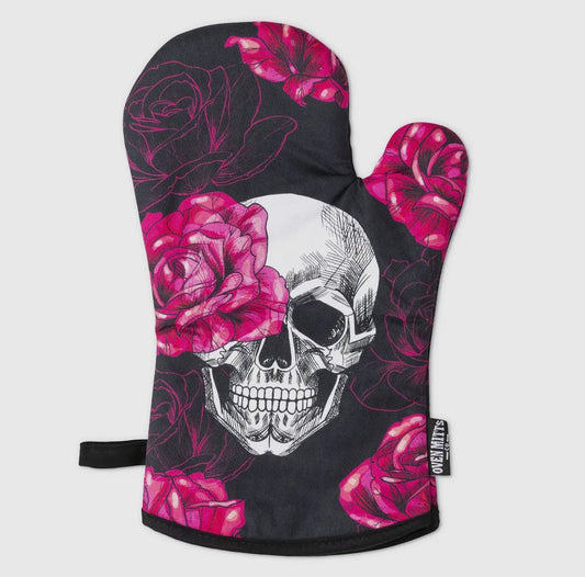 Pink Skull & Roses Oven Mitts & Potholder Set