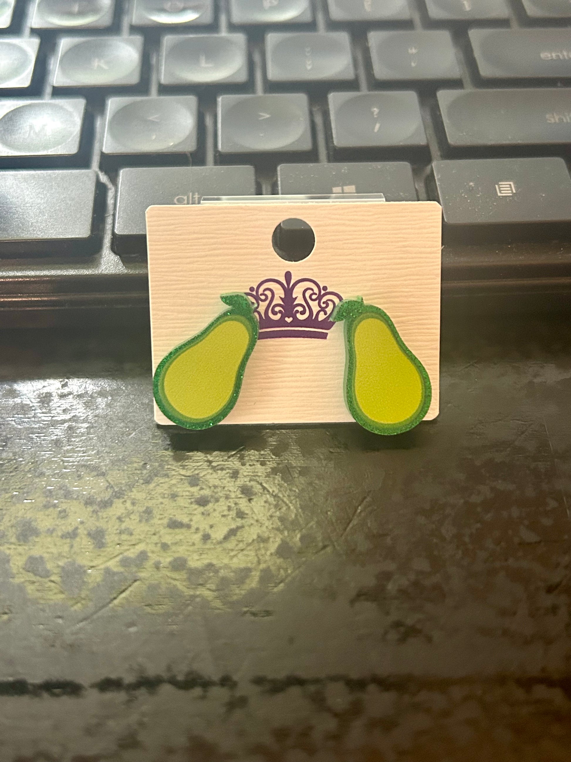 Cute avocado post earring with a glitter background.