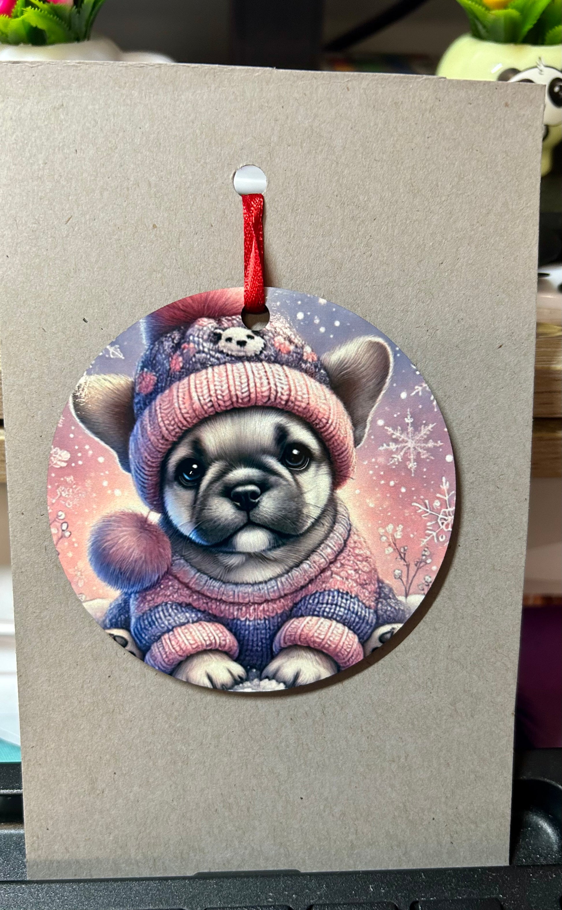 3" ornament. Comes with an adjustable ribbon to hang at your desired length.