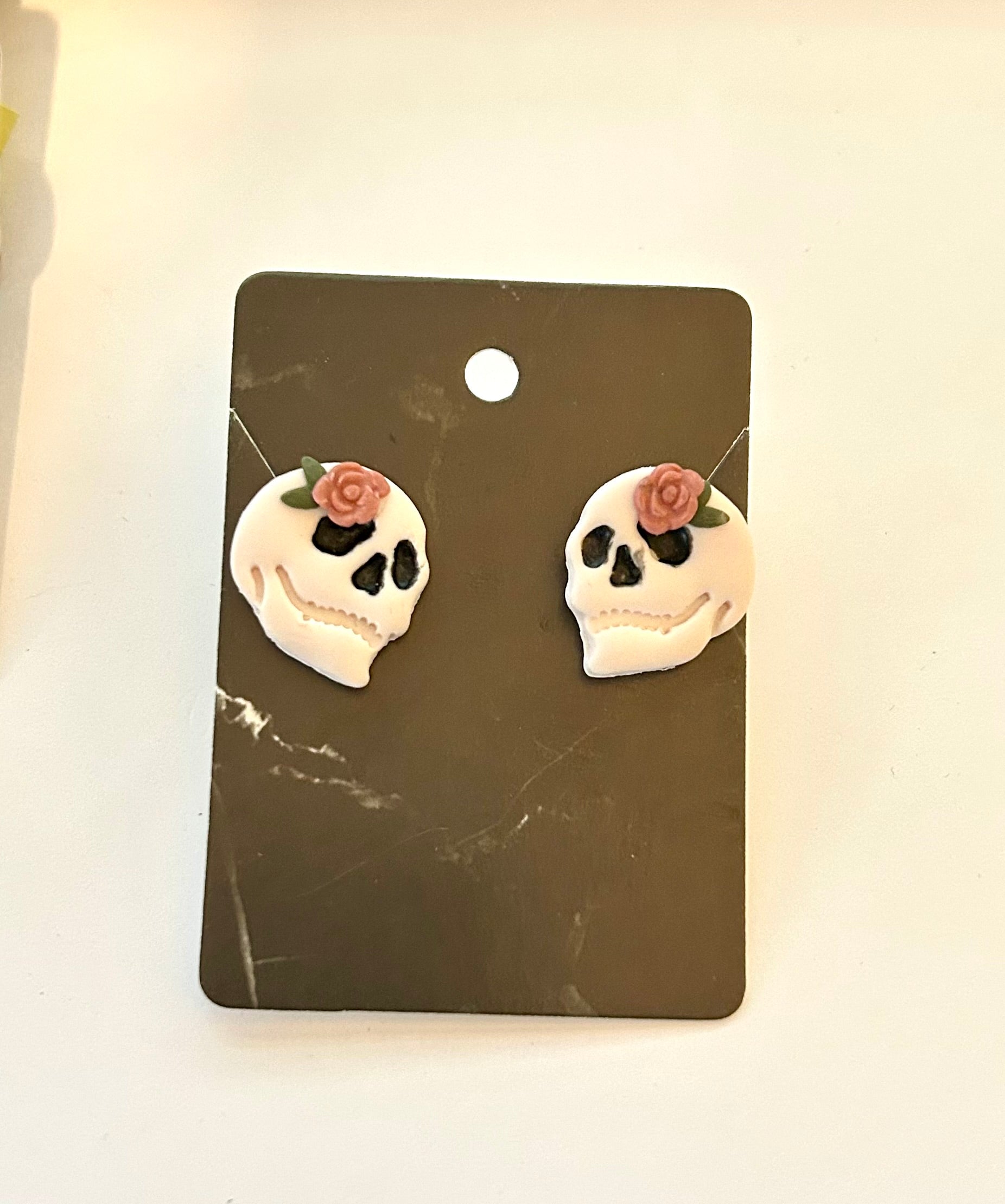 Clay post skull & flower earrings.